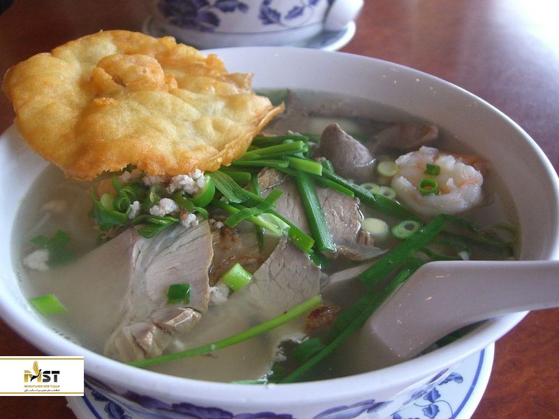 Hu tieu که نودل سوپ با گوشت است و ریشه آن به سایگون بر میگردد از بهترین غذاهای خیابانی هوشی مین است که میتوانید در خیابان نو ترانگ لانگ هوشی مین پیدا کنید. این نودل با کباب گاو و زبان گوشت گاو پخته شده کاگران، کارمندان و عاشقان غذا را شیفته خود میکند. بنابراین اگر در این خیابان یا فرعیهای اطرافش هستید حتما خودتان به این نودل خوشمزه و ارزان دعوت کنید.