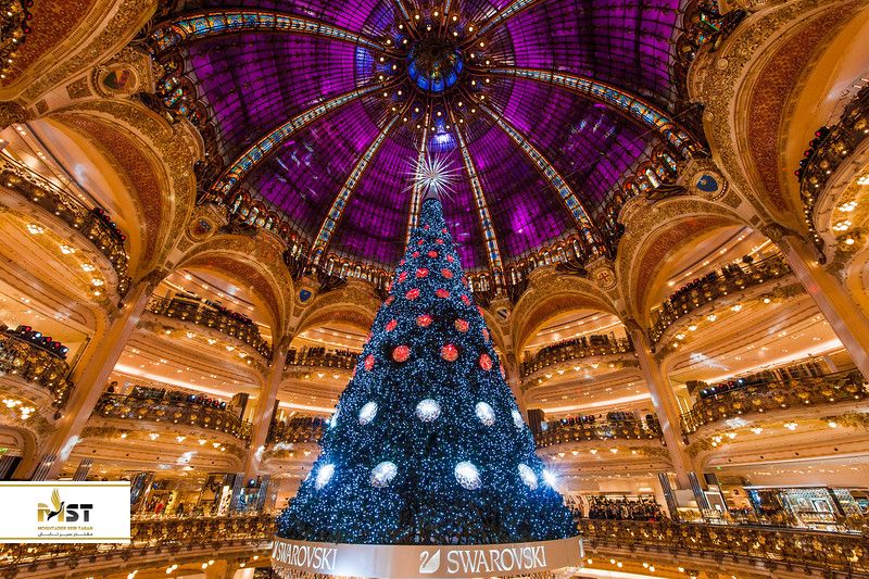 پاریس مهد مد اروپا، مرکز زیباترین و به روزترین پوشاک دنیا است. در هرکدام از خیابانها که قدم بزنید، مغازههایی از برندهای لباس، اجناس نمادینی از کشور فرانسه، قنادیها و کافههایی که مردم در آن مشغول مباحثه و خوردن قهوه هستند. یکی از جذابترین کارهایی که میتواند بیش از یک روز وقت شما را بگیرد، گشت و گذار در بازارهای مختلف و تماشای جدیدترین پوشاک و خرید هر آنچه میخواهید است. اما یکی از مراکز خریدی که در دسامبر و ژانویه بسیار دیدنی است و بازدید از آن را نباید از دست داد، گالری لافایت، یکی از مشهورترین پاساژهای پاریس است. هر آنچه تابحال به عنوان لوکسترین برند به گوشتان خورده، میتوانید در این پاساژ آن را بیابید. در نزدیکی کریسمس نیز که این مرکز خرید باشکوه با چندین برابر تزیینات، چشم شما را به خود خیره میکند. پیشنهاد میکنم ساعتها برای گردش در داخل گالری لافایت Galerie Lafayette زمان بگذارید، چون چشمتان سیر نخواهد شد. از انواع عطر و ادوکلن گرفته تا ساعتهای مچی، عینکهای آفتابی، لوازم آرایش و لباس. به طوری که لحظهای پیدا نمیکنید که چشم از آنها بردارید. حال زیبایی خیره کننده خود گالری را نیز در نظر بگیرید. همانند سالنهای اپرا، چند طبقه است که دقیقا وسط آن یک درخت کریسمس بزرگ قرار گرفته و چراغهای رنگارنگش خودنمایی میکند.