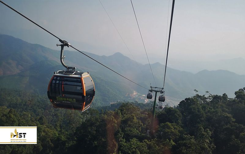 سوار شدن بر تله کابین برای رفتن به پل طلایی نزدیک دانانگ