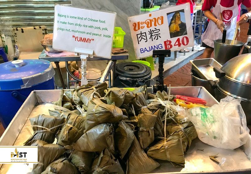 هر کشوری در شرق آسیا، مدل خاصی از این غذا را دارند. در تایلند این غذا همچون دلمه درون برگ بامبو پیچیده میشود. درون این برگها نیز برنج کته و کمی گوشت و چیزهای دیگر است که با هم مخلوط شدهاند. البته تنوع گوشتها نیز مطرح است و شما میتوانید هر گوشتی که خواستید حتی میگو نیز سفارش دهید.غذا بسیار ارزان و مقوی بوده و جان میدهد برای شروع یک روز عالی در بانکوک.