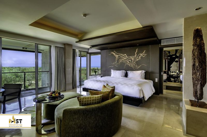 مجموعه اتاقهای این هتل شامل ۴۰۳ اتاق خاص با استایل مدرن است که به نوعی آن ماهیت خاص بالی را نیز در اختیار دارد. منظرهی خلیج جیمباران و غروب خورشید در این خلیج نیز از جمله امتیازهایی است که موقع اقامت در این هتل نصیبتان خواهد شد.