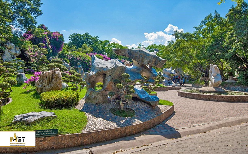 بخش اول این پارک که باغ و پارک سنگ نام دارد از چندین باغ سرسبز با گیاهان منحصر به فرد و باشکوه تشکیل شده است. اکثر درختان قرار گرفته در این پارکها قدمتی در حدود دویست سال دارند. به طوری که لقب قدیمیترین درختان آسیا را به خود اختصاص دادهاند. جالبترین و دیدنیترین بخش این پارکها بونسایهایی با طول عمر بالا بوده که توجه هر بینندهای را به خود جلب میکنند. علاوه بر آن سنگها و فسیلهای چند صد میلیون ساله و مجسمههای عظیم بسیاری نیز در آن قرار گرفتهاند.