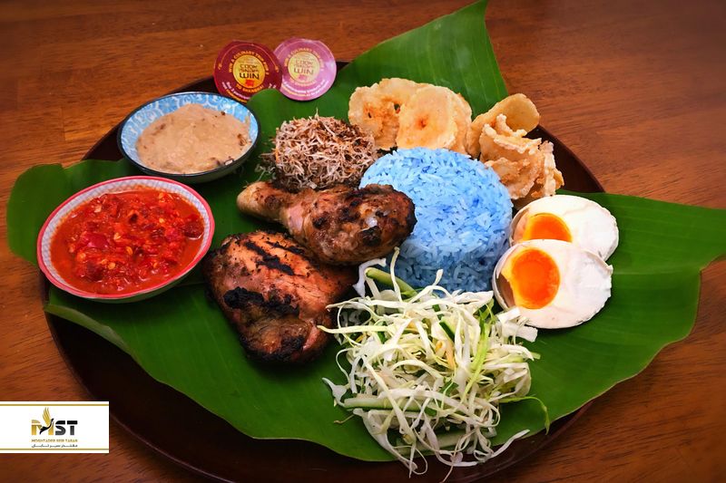 اگر برنج آبی به قدر کافی کنجکاوی شما را تحریک نمیکند باید بدانید مردم این منطقه همیشه منتظر هستند تا این غذا را که نوعی کلانتانی است را سفارش دهند. این غذا که متعلق به در شبه جزیره شمالی مالزی است با رنگ طبیعی گلها رنگآمیزی شده و سپس در آرد فرو میرود. در این غذا برنجی رنگی همراه با جوانه لوبیا و نارگیل سرخ شده، فلفل تند، و سس ماهی تهیه میشود. برای تجربه فرهنگی عمیقتر به جای قاشق و چنگال با دست غذا بخورید.