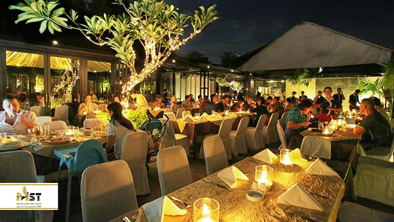 قبل از این که بخواهیم از داخل رستوران و منو بگوییم اشاره کنیم که این رستوران به دلیل قرارگیری در ساحل ماسه سفید و نمای دیدنی به معبد Petitenget یکی از بهترین رستورانهای سمینیاک برشمرده میشود. این رستوران همیشهی خدا شلوغ است و حتی تا ساعات پایانی شب هم جای سوزن انداختن در آن وجود ندارد. در طول روز میتوانید از ساحل به رستوران بروید، اما غروب به بعد از طریق پارکینگ معبد و پل چوبی زیبایی که با چراغهای زرد تزئین شده قابل دسترسی است. منوی رستوران ثابت نیست و به حسب نوآوری سرآشپزها مورد تغییر و دگرگونی قرار میگیرد. البته تاکید آنها بر تمرکز بر طعمهای بالیایی و برهم نزدن اصالت غذاهای بومی است.