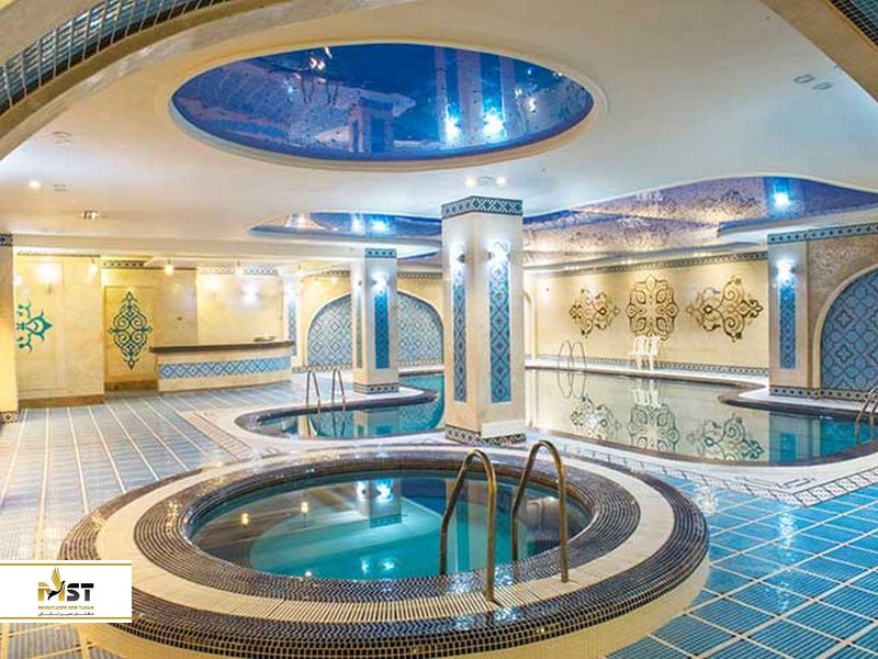 در این هتل امکانات و تفریحات مختلفی در نظر گرفته شده است. در طبقه منفی ۱ دو سالن مجزا با استخرهای مدرن و زیبا قرار دارند که به صورت اختصاصی برای آقایان و خانمها در دسترس هستند. محیط این سالنها در عین زیبایی و شیکی، حس و حال سنتی داشته و کاشیهای کرم و آبی تزئین شدهاند. به علاوه امکان دریافت ماساژ در سالن ماساژ هم وجود دارد. ماساژورهای مجرب و دوره دیده متناسب با نیازهای درمانی شما استرس و فشار را از روی عضلات بدنتان برمیدارند. حتی اگر اهل شنا و ماساژ هم نباشید در نهایت میتوانید با رفتن به سالن بدنسازی مجموعه از وسیلههای الکترونیکی روز و لوازم مختلف ورزشی استفاده کنید.