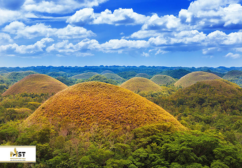 این تپههای گنبدی زیبا که از دور شبیه به شکلات به نظر میرسند، یکی از جاذبههای برجسته فیلیپین هستند که توریستهای داخلی و خارجی عاشق بازدید از آنها هستند. اما چرا به این تپهها شکلاتی میگویند؟ چمن این تپهها در فصل تابستان خشک شده و به رنگ قهوهای در میآیند. به این ترتیب از دور آنها کاملا قهوهای دیده میشوند به همین دلیل به آنها تپههای شکلاتی فیلیپین میگویند. نکته جالب درباره این تپهها این که کاملا متقارن به نظر میرسند.