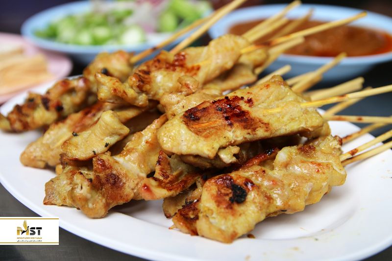 سیخهای ساتای، یک میان وعده خیابانی محبوب برای افرادی است که در حال گشت و گذار در بانکوک تایلند هستند. تکههای مرغ، گوشت گاو یا گوشت خوک خرد شده در ادویه و زردچوبه فراوان خوابانده شده و برای کباب شدن به سیخ کشیده میشوند. غذاکده خیابانی Hea Sa که در بازار شلوغ Chinatown قرار دارد، بهترین مکان برای لذت بردن از این غذاست. این غذاکده، ساتای را همراه با یک سس بادام زمینی غلیظ، سالاد و خیار شور، صدف و فلفل سرو میکند. فراموش نکنید که یک نان سفید نیز در کنار این غذای لذیذ سفارش دهید.