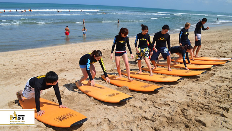 اگر میخواهید اولین سواری خود بر روی موجها را در تور بالی تجربه کنید، بهتر است سری به مدارس پر تعداد موج سواری در این جزیره بزنید تا در عرض چند ساعت شما را برای یک سواری هیجان انگیز آماده کنند. اگر هم برای مدتی طولانی به بالی سفر کرده باشید، میتوانید چندین جلسه در این آموزشگاهها حضور پیدا کرده و چیزهای بیشتری یاد بگیرید. بهترین مدارس موج سواری در سواحل کوتا، لگیان، سمیانک، کانگو و سانور قرار گرفتهاند.