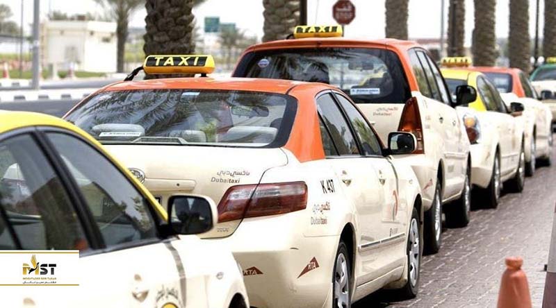 مانند هر شهر دیگری در جهان، تاکسیها در سراسر دبی در رفت و آمدند و به راحتی در دسترس هستند. تاکسیها گرانترین وسیله حمل و نقل عمومی به شمار میآیند و به ازای ۱.۷۵ کیلومتر، ۱۲ درهم دریافت میکنند و البته میتوان آنها را به آسانی در ورودی مراکز خرید و تمام جاذبههای اصلی گردشگری یافت.