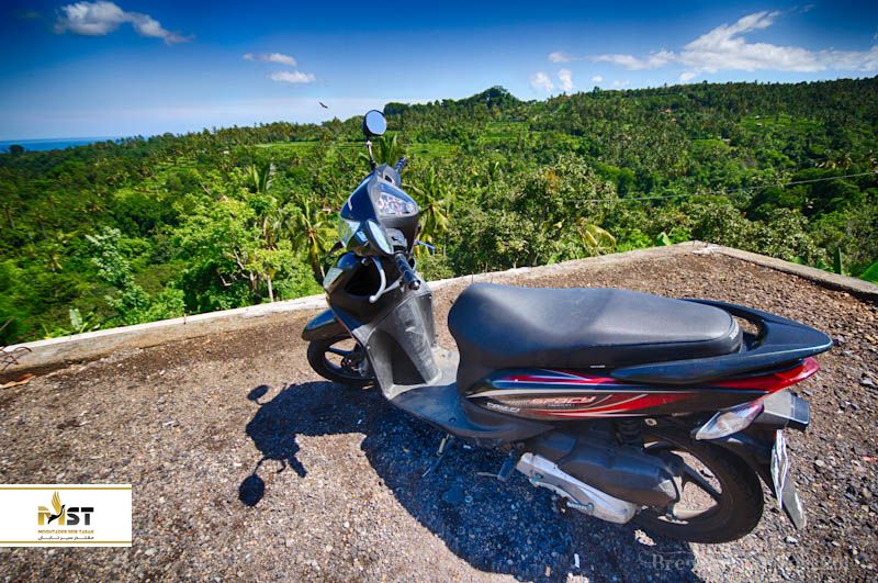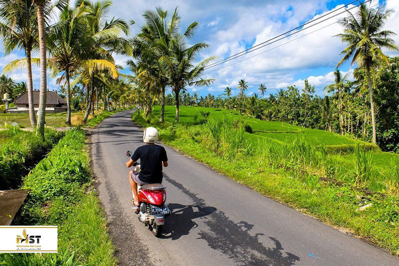 جادههای بالی کوچک و باریک هستند. رانندگی با اسکوتر هم جذاب است و هم ارزانتر از گرفتن راننده بوده و در عین حال هم سریعتر است. اجاره عادی روزانه حدود ۵۰.۰۰۰ روپیه اندونزی است، اگر لازم است چانه بزنید. اگر هرگز این کار را نکردهاید از جایی که اجاره میکنید درخواست کنید آموزش سریعی به شما بدهند و فراموش نکنید همیشه کلاه ایمنی سر کنید. از جادههای اصلی خارج شوید و در جادههای دور افتاده حرکت کنید. نسیم، رایحهها و مناظر به شما احساس وجد میآورند.