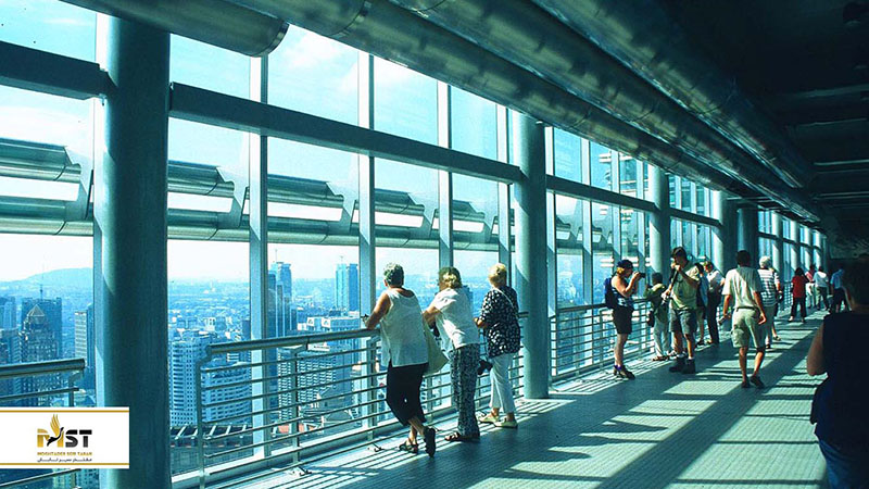 بعد از این که بلیطها را ارائه کردید، دستبندهای آبی رنگ به شما داده میشود و خوشبختانه بازدید از این مکان سازماندهی عالی دارد و همهی مسیرها با خطوط رنگی مشخص شدهاند. البته راهنماهای انگلیسی زبان که شما را در گروههای مختلف همراهی میکنند، ابتدا برای بازدید شما را به پل آسمانی برده و سپس به Observation Deck یا همان جایی که برای تماشای منظرهی کوالالامپور در نظر گرفته شده میبرند. در نهایت نیز میتوانید به نمایشگاه دیجیتال بروید.