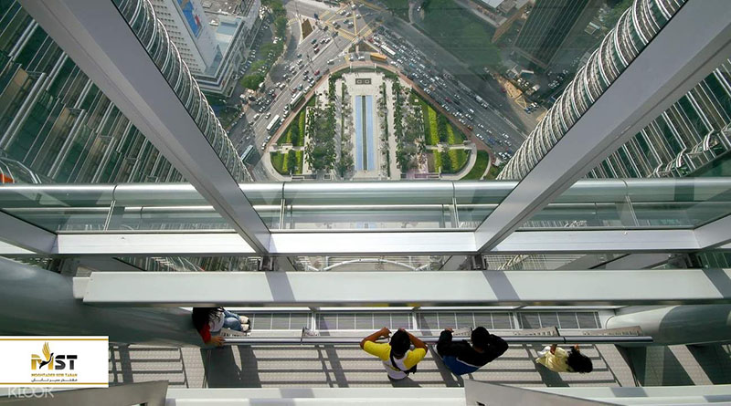 این پل ۱۷۰ متر طول داشته و ۵۸ متر نیز از زمین دور است. این پل که خود دو طبقه دارد، در واقع طبقات ۴۱ و ۴۲ دو برج را شامل میشود که با دیوارهای شیشهای، یک مکان رویایی برای قدم زدن محسوب میشود. نیازی به عجله کردن نیست و شما میتوانید با فرصت کامل در این برج قدم زده، عکس بگیرید و از نمای شهر لذت ببرید.