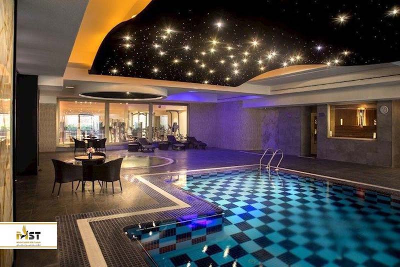 و اما مهمانان میتوانند در این هتل از شنا در استخر سرپوشیده تمیز و زیبا و بزرگ لذت ببرند. هر چند که در این هتل امکاناتی نظیر سونا، جکوزی، ماساژ و مرکز تناسب اندام نیز به استقبالتان میآیند. این هتل با مساحتی بالغ بر ۱۱ هزار متر مربع، در سال ۱۳۸۱ افتتاح شد و در طی سالیان به مقصد محبوب بسیاری از گردشگران داخلی و خارجی بدل گشت.