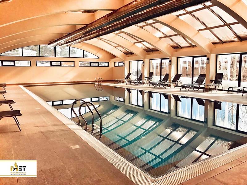 یکی از جذابترین بخشهای این ریزورت، استخر سرپوشیده با دیوارهای شیشهای است که اگر در زمستان به آنجا مراجعه کنید، میتوانید در هنگام شنا کردن، دانههای برف را با پسزمینهای از کوهستان سفید پوش تماشا نمایید. البته سالنهای ورزشی بیشتری برای این محل در نظر گرفته شده که امل سالن بسکتبال، اسکواش، فوتبال داخل سالن و ورزشها و بازیهای میشود.