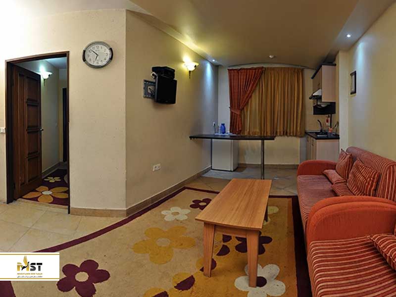 اگر بیخبر شما را به داخل هتل ببرند با وجود مبلمان مجلل مخملی هرگز به ذهنتان خطور هم نمیکند در هتلی مقرون به صرفه قرار دارید. این هتل که در خیابان آخوند خراسانی مشهد قرارگرفته با ماشین تنها ۵-۶ دقیقه تا ورودی باب الجواد حرم رضوی فاصله دارد. واحدهای این هتل مجهز به آشپزخانه، سرویس بهداشتی مدرن و اختصاصی، تخت راحت و تلویزیون صفحه تخت هستند. اقامت در خارج از فصل گردشی از پایه ۸۰ هزار تومان شروع میشود.