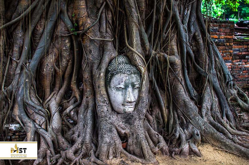 در حمله ارتش برمه به آیوتایا بسیاری از مجسمهها و معابد و اسرار آنها را در این شهر نابود کردند. آنها سر مجسمههای بودا را جدا میکردند و برمیداشتند اما یکی از آنها باقی ماند و به شهرت رسید. چرا؟ زیرا این مجسمه بین ریشههای عظیم یک درخت زنده و در حال رشد گیر کرده و به منظرهای شگفتانگیز و همچنین به جاذبهای محبوب برای گردشگران داخلی و خارجی که به این شهر سفر میکنند تبدیل شده است.