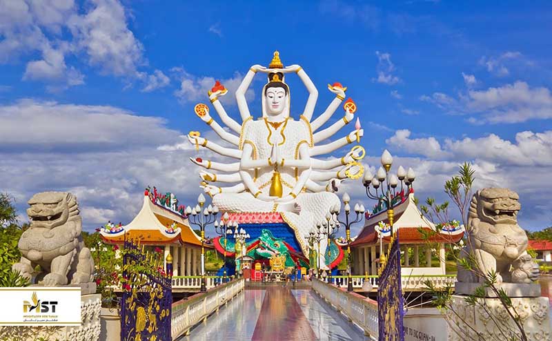 مجسمه چشمگیر Guanyin که در جزیره دیدنی کوه سامویی واقع شده یکی از قابل توجهترین و به یاد ماندنیترین مجسمههای این سرزمین است. این مجسمه به سبک چینی، الههای از مهر و رحمت، که ۱۸ بازو دارد و در حالی که روی اژدها استراحت میکند، میبینید. اگر در کوه سامویی تایلند هستید حتما از این مجسمه دیدن کنید که ارزشش را دارد.