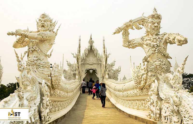 معبد سفید و خیره کننده Wat Rong Khun Chaing Rai تنها با زیبایی مجسمههای پیچیده و منبت کاری شده و حکاکی شده که در سراسر محوطه قابل رویت است شناخته شده و معروف است. هر دو چهره از آیینهای بودایی و هندو را می توان به شکل تندیس در اینجا یافت، از ناگای ترسناک گرفته تا خدای مرگ و رهو هر چیزی که فکرش را بکنید اینجا میتوانید پیدا کنید. لازم به گفتن نیست که روح وهم آور دریا با دستانی به سمت آسمان از چشمگیرترین و خیره کنندهترین مجسمه این معبد برشمرده میشود.