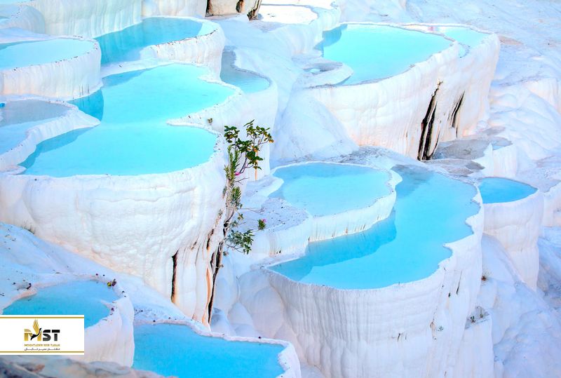 بدون هیچ تردیدی مطلب امروز ما باید با معرفی پاموکاله در نزدیکی کوش آداسی آغاز شود. یکی از شگفتیهای طبیعی در ترکیه که به خاطر سرازیر شدن آب چشمههایی از بالای تپه به پایین و تهنشین شدن مواد معدنی شکل گرفته و وقتی از دور به آن نگاه میکنید شبیه به تپهای برفی به نظر میآید. این استخرهای کوچک و بزرگی که در این مکان شکل گرفتهاند، در خود آبی فیروزهای و گرم دارند که در بیشتر طول سال میتوانید در آنها آبتنی کنید. در این منطقه بیش از ۱۷ چشمهی آب گرم وجود دارد که دمای آنها بین ۳۵ تا ۱۰۰ درجه سانتیگراد برآورد میشود و به همین دلیل است که آب این استخرها، گرم و دلچسب هستند.