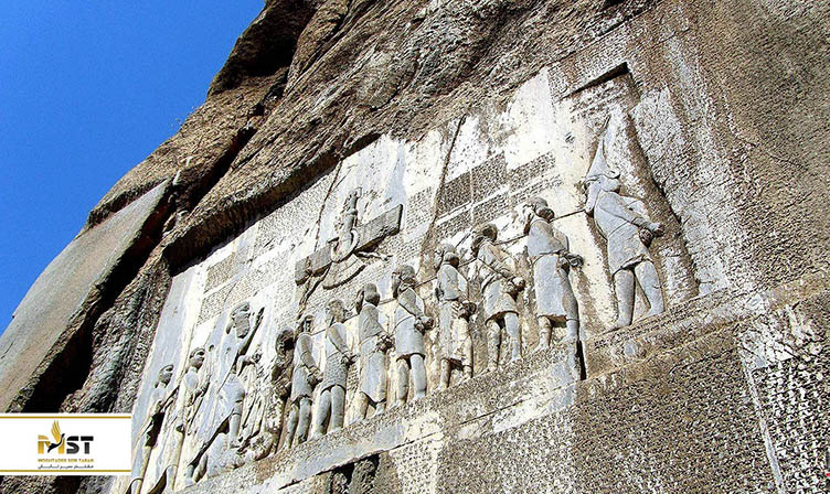 بزرگترین سنگ نوشتهی دنیا، بخشی مهم از هویت تاریخی ایرانیان نیز محسوب میشود. این نقش برجستهی بزرگ در محوطهی بیستون در اطراف کرمانشاه واقع شده و ساخت آن به دورهی هخامنشیان بر میگردد و داستان پیروزی داریوش را روایت میکند. اهمیت این سنگ نوشته از آنجاست که هم به زمان میخی، هم به زبان ایلامی و هم زبان اکدی نوشته شده و یکی از دلایل رمزگشایی از این خط، همین تندیس بزرگ و ارزشمند است.