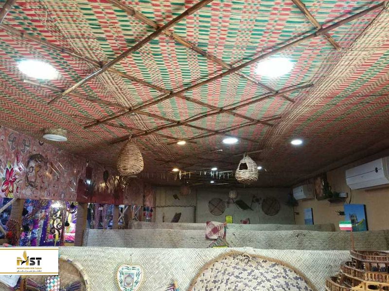 اینجا در واقع یک خانه خشتی است و برگهای نخل و سایر تزئینات محلی، در و دیوار آنرا آذین بستهاند. بخش VIP نیز اتاقی است که به شکل حجله عروس درآمده و دایرهای شکل است. در اینجا از تخت و میز و صندلی خبری نیست و برای غذاخوردن، باید روی زمین بنشینید. بعلاوه در بدو امر، حلوا و قهوه عربی در این سفره خانه صمیمی سرو میشود.