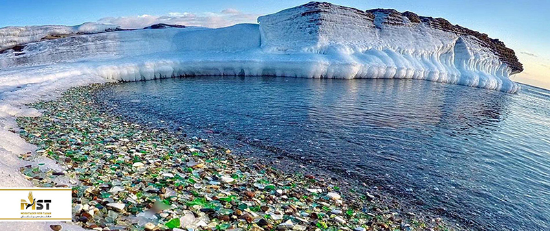 با رانندگی کوتاه از ولادیوستوک، شهری که کمتر از ۵۰۰ کیلومتر (۳۱۱ مایل) از مرزهای کره شمالی و چین فاصله دارد یک ناهنجاری بینظیر طبیعی است. با گذشت زمان هزاران بطری دور ریخته شده و تکههای شیشه شکسته که در بطن طبیعت فرو رفته خظه ساحلی اینجا را پوشانده و اکنون به نظر سنگریزههای چند رنگی به نظر میرسند که خط ساحلی ناهموار را پوشانده اند. این شیشه شکستهها که در اثر فرسایش برندگی خود را از دست دادهاند امروزه نمایی بینظیر و فوقالعاده به این خلیج دادهاند.