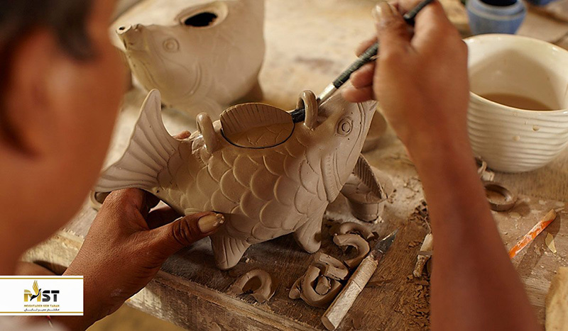 تماشای هنرمندان بالی موقع ساخت صنایع دستی