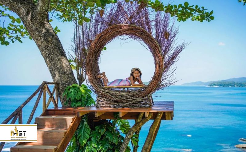 دکورهای اینچنین خوراک عکسهای اینستاگرامی هستند. این صندلی با یک قاب شبیه به لانه پرنده دور گرفته شده، کنارش یک درخت قدیمی است و در پیش رو نیز دریای بیکران و منظرهی پوکت را دارد. یک قاب عالی که میتواند عکسی ماندگار برایتان باشد.