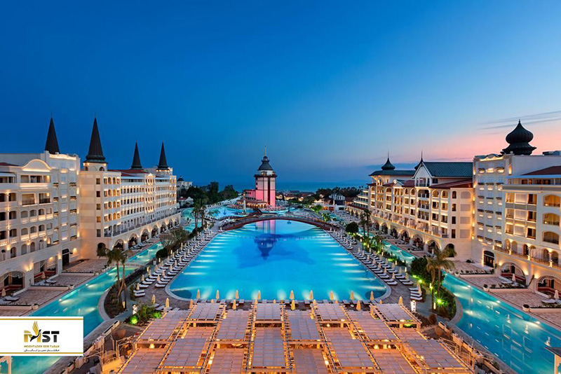 یکی دیگر از شهرهای ترکیه که در آن چندین هتل لاکچری و مطرح میتوانید پیدا کنید، آنتالیا است و بدون شک، هتل مردان پالاس سرآمد تمامی این هتلها خواهد بود. این ریزورت یکی از بزرگترین استخرهای روباز تمام اروپا را به همراه ۱۱ رستوران فوقالعاده میزبانی میکند و یکی از بهترین سواحل اختصاصی در میان هتلهای ترکیه را نیز دارد. همهی اتاقهای این هتل دارای بالکن هایی رو به دریای مدیترانه، یا کوه توروس هستند و گردشگرانی که در این مکان حضور دارند، میتوانند روزهای خود را در میان مجموعهای بزرگ از انواع تفریحاتی که در هتل پدید آورده شده، سر کنند.