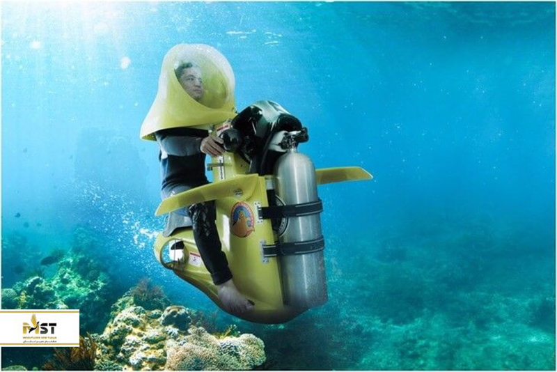 این تفریح آبی نیز مانند غواصی، شما را به تماشای دنیای زیر آب دعوت میکند و با سوار شدن روی یک اسکوتر و برخورداری از یک مخزن اکسیژن، میتوانید در میان مرجانها و آبزیان و گیاهان به گشت و گذار بپردازید. اگر مایل باشید حتی میتوانید به صورت گروهی سوار اسکوتر شوید. البته باید گفت برای برخورداری از این تفریح آبی، محدودیتهایی وجود دارد از جمله اینکه افراد زیر ۱۲ سال و همچنین کسانی که از ناراحتی فشار خون و نارسایی قلبی رنج میبرند و خانمهای باردار نمیتوانند اسکوترسواری کنند.