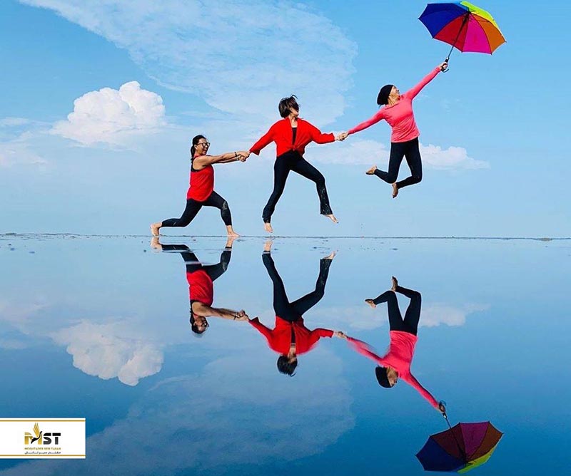 این مکان در واقع یک دریاچهی بزرگ با عمقی بسیار کم است که به خاطر نمکی بودنش، همچون یک آینه عمل میکند. به همین دلیل است که همچون یک آینهی بزرگ عمل کرده و تصویر آسمان را در خود انعکاس میدهد. این مکان رویایی بدون شک یک تجربهی فوقالعاده برای شما در سفرهایتان خواهد بود و همچنین میتوانید عکسهایی فوقالعاده زیبا بگیرید.