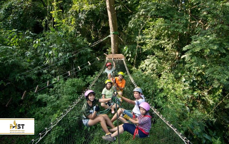 این مکان با پارکهای آبی و بازی که در کرابی یا دیگر نقاط تایلند میبینید کاملا متفاوت است. جایی که بازیهای هیجان انگیز آن همگی روی درختها ساخته شده و فعالیتهای آن شامل راه رفتن روی طناب، زیپلاین، جا به جا شدن میان درختان و بازیهای این چنینی میشود. چند زیپلاین عالی و هیجان انگیز در این پارک وجود دارد که شما را از لا به لای درختان در مسافتی طولانی رد خواهد کرد. همچنین شما میتوانید با دوچرخههای آویزان در هوا سواری کنید یا با دوستان خود در مسابقههای عجیب اما هیجان انگیز شرکت نمایید.
