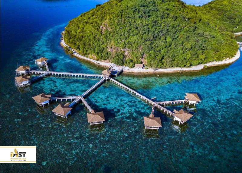 این ریزورت از بسیاری جهات با دیگر اقامتگاههای لیستمان متفاوت است. شما برای رفتن به ویلاهای زیبا و البته بزرگ روی آبی، باید روی یک پل چوبی شناور رفته و به ویلای مورد نظر خود برسید. خود جزیره بسیار کوچک و پوشیده از درختان پرپشت است و ساحل آن جا نیز خیلی بزرگ نیست، اما منطقه محافظت شده آبی برای شنا و آبتنی و انجام تفریحات آبی برای مهمانان ریزورت فراهم شده است. این جزیره اصلی بسیار نزدیک است و خیلی راحت میتوانید نقاط مختلف فیلیپین را ببینید. همچنین محیط آبی زیبا و تنوع جانوران آبی این مکان آنقدر جذاب است که خود میتواند، دلیلی برای رفتن به این مکان باشد.