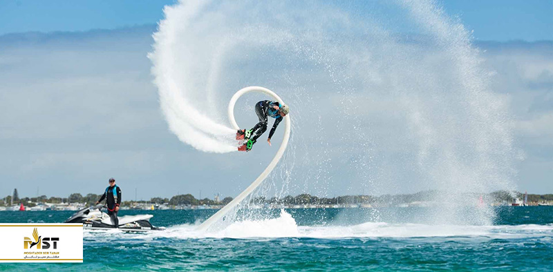 فلای بورد یک ورزش نو آبی محسوب میشود که در آن شما بر روی یک تخته مخصوص سوار میشوید که موتورهای جت آن آب را زیر پای شما با فشار زیاد به سمت پایین جریان میدهند. همین باعث میشود تا شما به پرواز در بیایید و حرکات مختلف را در آسمان اجرا کنید. البته این ورزش نیز از جمله فعالیتهای گرانقیمت در کیش محسوب میشود که ۵ دقیقه آموزش و ۲۰ دقیقه انجامش، حدودا ۲۶۰ هزار تومن برایتان آب خواهد خورد.