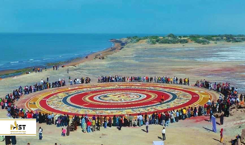 این بزرگترین فرش خاکی جهان است که در ساحل هرمز و با استفاده از ۱۸ رنگ خاک مختلف نقاشی شده است. در طراحی این فرش رنگی که توسط تیم مهدی هاشمی و مردم بومی نقاشی شده از اساطیر و افسانههای محلی و نقوش بومی مثل ماهی و ماهیگیر بهره برده شده است. این فرش جایی است که همه ساله در کنار آن سال نو را جشن میگیرند.