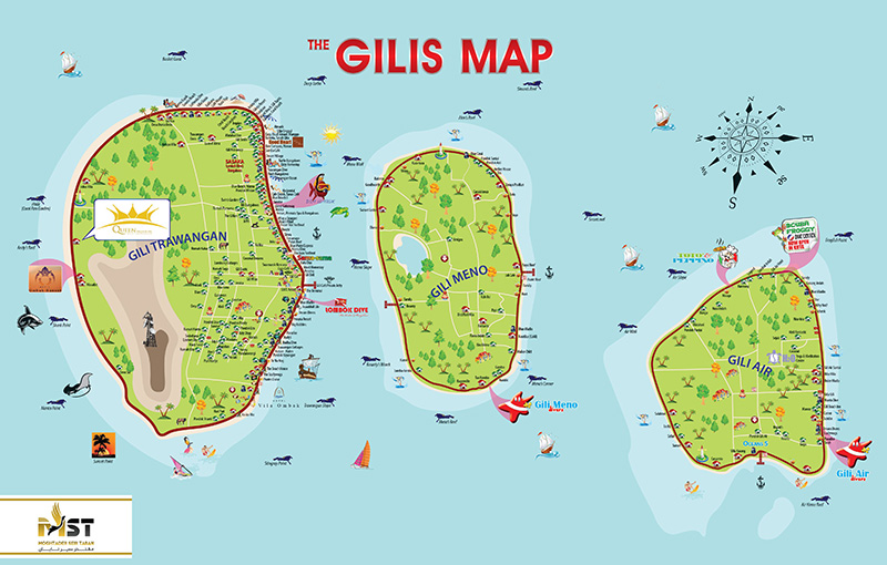 قایقها عموما به مقصد جزیرهی اصلی از بالی حرکت میکنند و اگر میخواهید به دیگر جزایر بروید، از آن جا باید قایقهای مجزا را سوار شوید. مسیر آبی نیز بسته به قایقی که انتخاب میکنید بین ۱.۵ تا ۳ ساعت به طول میانجامد، اما همین مسیر آبی نیز خود یکی از لذتهای رفتن به جزایر گیلی هستند.