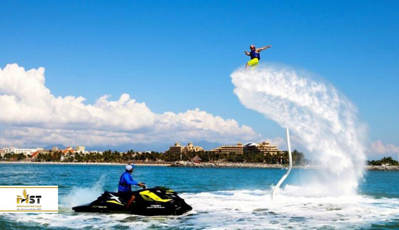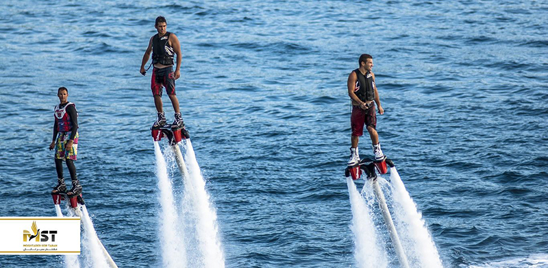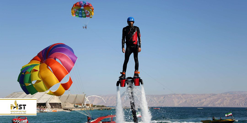 فلای بورد وسیلهای آبی و هیجانی است که به جای تخته سواری بر روی موجهای پرواز در هوا را به شما هدیه میدهد. فلای برد در واقع کفشهایی با قدرت جریان آب است که فلای بورد سوار را بین زمین و آسمان نگه میدارد. این کفشها به وسیله شلنگ محکم و قطوری فشار آب را به زیر پا منتقل کرده و باعث میشود که شما بتوانید تا ارتفاع ۱۲ متر به آسمان بروید. البته همانطور که قابل حدس است کنترل این فشار آب اصلا آسان نیست اما شما میتوانید با یک دوره چند دقیقهای کوتاه زیر نظر مربیان مجرب کار با آن را یاد بگیرید و با چرخ در هوا و ایجاد حرکات نمایشی به داخل آب شیرجه بزنید و دوباره به هوا پرواز کنید. فلای بورد دارای دو نوع مبتدی و حرفهای است که هر کدام شرایط خودشان را دارند. این وسیله تفریحی و لوکس اولین بار در سال ۲۰۱۱ در کشور چین معرفی شد که اولین ویدئوی آن در دو هفته ۵ میلیون بار دیده شد. همین سرآغاز ورود این وسیله به مسابقات ورزشی و اپراتورهای توریستی بود. حالا بعد از کمتر از یک دهه میتوانید در تور کیش فلای بورد را تجربه کنید.