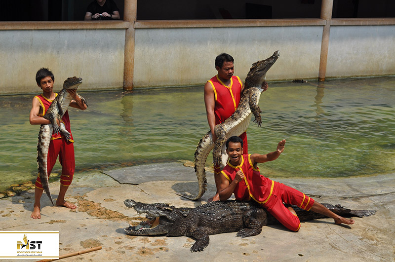 همانطور که میدانید تمساح در کشورهای آسیای شرقی از محبوبیت ویژهای برخوردار است. تایلند نیز دارای بزرگترین مزرعه تمساح جهان است که دارای ۳٠ هزار تمساح و ۶٠ هزار کروکودیل مختلف میباشد که یک صنعت پردرآمد برای این کشور به حساب میآید. در این مزرعه اعجابانگیز یکی از ترسناکترین موجودات دنیا را از نزدیک مشاهده خواهید کرد. این خزندگان عظیم الجثه تیز دندان با ابهت و شکوه در این مکان زندگی میکنند. فضای زندگی این حیوانات بسیار جالب و وحشی است که به راحتی در آن به شنا کردن، استراحت و همچنین میل کردن غذا میپردازند. تماشای این صحنه به اندازهای لذت بخش است که ساعتها شما را مشغول به خود میکند و گذر زمان را در این مکان شگفت انگیز متوجه نخواهید شد.