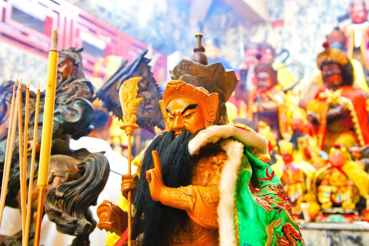 گفتنی است ساختمان اصلی زیارتگاه جوی توی، چندین بار مورد بازسازی قرار گرفته و نتیجه آن ساختاری جذاب با ۳ محراب بزرگ است که مجسمههای خدایان چینی را به نمایش میگذارد. خدای اصلی این معبد Tean Hu Huan Soy است، خدای تائوئیستی که با هنرمندان و رقصندگان مرتبط است. تصویر او در وسط و در بالاترین موقعیت محراب اصلی قرار دارد و در کنارش مجسمههای سگ و مرغ قرار دارند که از دوران کودکی، حیوانات خانگی مورد علاقه وی بودهاند. در صورت تمایل، میتوانید از این جذابیتها در فضای داخلی عکس بگیرید.
