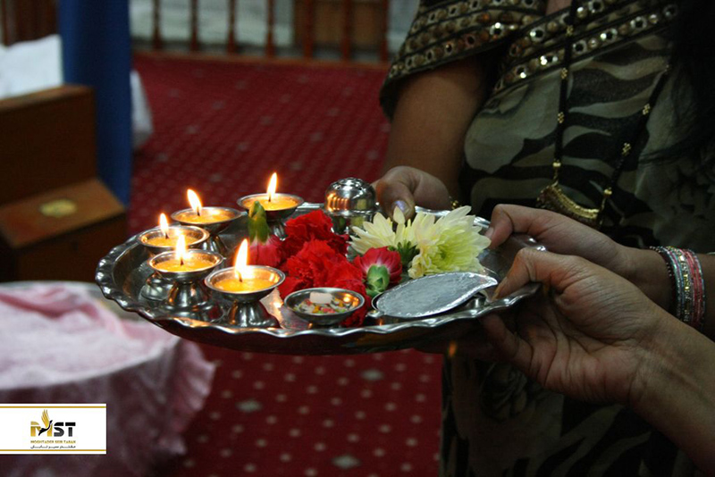 قرار دادن خال قرمز بر روی پیشانی