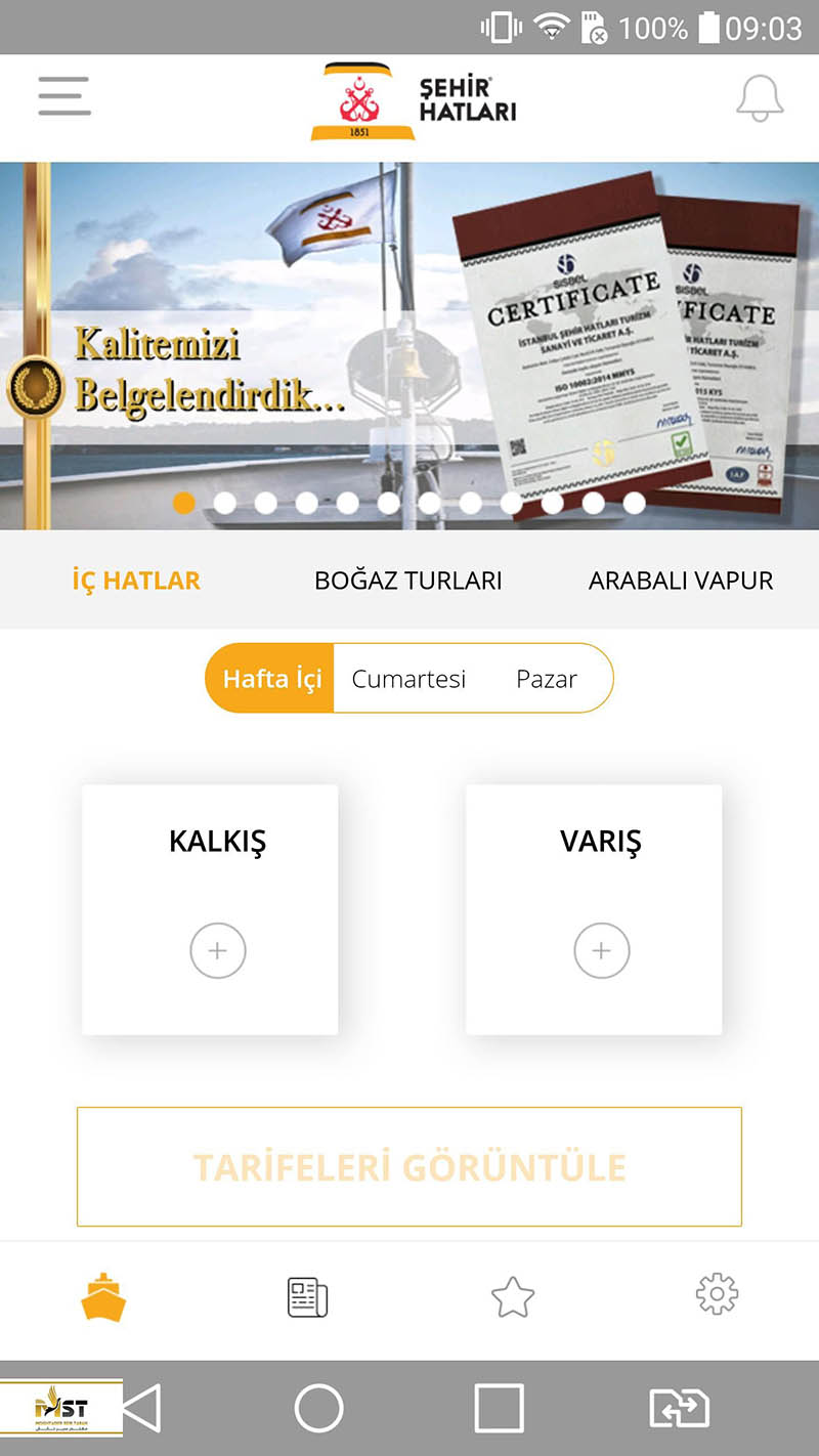 اگر به دنبال اپلیکیشنی کاربردی برای اطلاع از اسکلهها، مسیرها و ساعت حرکت کشتیها در تنگه بسفر هستید Deniz Otobüsü گزینهای بسیار خوب برای شما خواهد بود. کار با این برنامه بسیار آسان بوده و مسافران میتوانند با نصب آن بر روی تلفنهای هوشمند خود از ساعات حرکت اتوبوسهای دریایی از مبدا و مقصد آگاه شوند. این برنامه قابل اجرا بر روی تلفنهای اندروید و ios است.