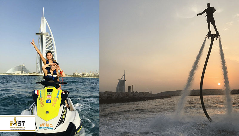 ترکیبی جت اسکی و فلای برد: جت اسکی سواری در این فعالیت مربوط به گشت و گذار و تور نیست و در اختیار شما قرار داده میشود تا بتوانید آزادانه در محیط مقرر شده گردش کنید. ۳۰ دقیقه جت اسکی را در اختیار خواهید گرفت و ۳۰ دقیقه نیز میتوانید فلایبرد سواری کنید.