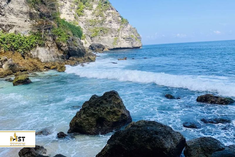 درست مقابل ساحل صخرهای آتو (Atuh) یکی از زیباترین سواحل دنیا یعنی ساحل الماس در نوسا پنیدا واقع شده است. از بالای صخرههای یاد شده، شما میتوانید، زیباترین نمای ممکن از این ساحل را ببینید. خوشبختانه از سال ۲۰۱۸ پلههایی برای رفتن به بالای این بخش درست شده تا خیلی راحتتر بتوانید به آن بالا برسید. البته در آخر حتما به خود ساحل بروید و در آب شفاف آن، کمی شنا کنید.