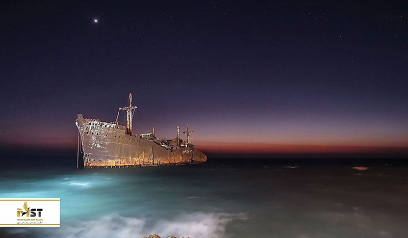 یکی از نمادینترین جاهای کیش که در تمامی پوسترهای تبلیغاتی از آن استفاده میشود کشتی یونانی به گل نشسته در نزدیکی سواحل کیش است که در غروب آفتاب و در پس زمینه نارنجی دریا همچون رویایی مبهم و وهم آلود به نظر میرسد. این کشتی که قدمت تاریخی ندارد در سال 1345 در نزدیکی ساحل کیش به دلیلی نامشخص به گل نشست و تلاشها برای نجات آن بی ثمر ماند. بنابراین آنها کشتی را تخلیه و تمامی بارها و سرنشینان را آتش زدند. اگرچه علت اصلی این اتفاق مشخص نشد اما عدهای میگویند به دلیل مه غلیظ در هوا ناخدا کنترل هدایت درست کشتی را از دست داد و کشتی به گل نشست.