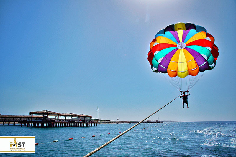 قطعا پرواز کردن بر فراز آسمان یکی از لوکسترین تفریحاتی است که هر گردشگری میتواند در تور کیش تجربه کند. اگر ایده چتر پاراسل برای شما نیز جذاب است باید به یکی از ساحلهای تفریحی جزیره کیش رفته و بلیط پاراسلسواری را خریداری کنید. سوار شدن به چتر پاراسل از ۳۰۰ الی ۲۵۰ هزار تومان متغیر بوده و شامل ۴۵ دقیقه کشتیسواری و ۶ دقیقه پرواز بر فراز آسمان بر روی آبهای نیلگون خلیج فارس است. در صورتی که از وزن بالایی برخوردار نباشید میتوانید به صورت دو نفره به همراه دوست، همسر یا کودک خود تجربه این تفریح هیجانانگیز در جزیره کیش را داشته باشید. پاراسل سواری بهترین فرصت برای تماشای چشمانداز زیبای خلیج فارس است.