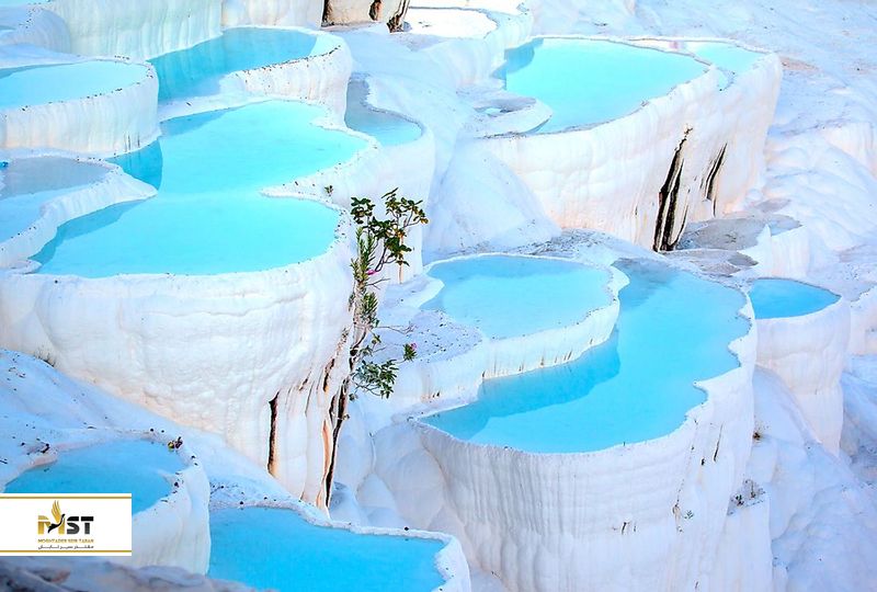پاموکاله که در زبان ترکی به معنای قلعه پنبهای است، نام خود را از ظاهر تراسهای سفید و حوضچههای رسوبی گرفته است. پاموکاله در ۱۹ کیلومتری شمال شهر دنیزلی و ۲۰۰ کیلومتری شرق کوش آداسی قرار دارد. تراورتنهای سفید نفسگیر پاموکاله توسط آب آهکی که از چشمههای حرارتی مجاور بیرون میریزد، لایه به لایه شکل گرفته است. دمای آب چشمهها ۳۵ درجه سانتیگراد است و از نظر علمی تأثیر مثبت آن بر بیماریهای عروقی و قلبی، روماتیسم، فشار خون، مجرای ادرار و بیماریهای کلیوی ثابت شده است. آبهای شفابخش پاموکاله که زمانی پادشاهان روم برای حمام کردن به آن میآمدند، اکنون در خدمت بازدیدکنندگان محلی و بین المللی است. نشستن یا دراز کشیدن در یکی از استخرهای پاموکاله و تماشای غروب خورشید در دشت دنیزلی در پایین، احساس فوقالعادهای خواهد داشت که نباید در سفر با تور کوش آداسی از آن غافل شوید. همچنین درست در پشت سنگهای تراورتن، شهر باستانی هیراپولیس قرار دارد که توصیه میکنیم در بازدید از پاموکاله کوش آداسی به هیچ وجه دیدن آن را از دست ندهید.