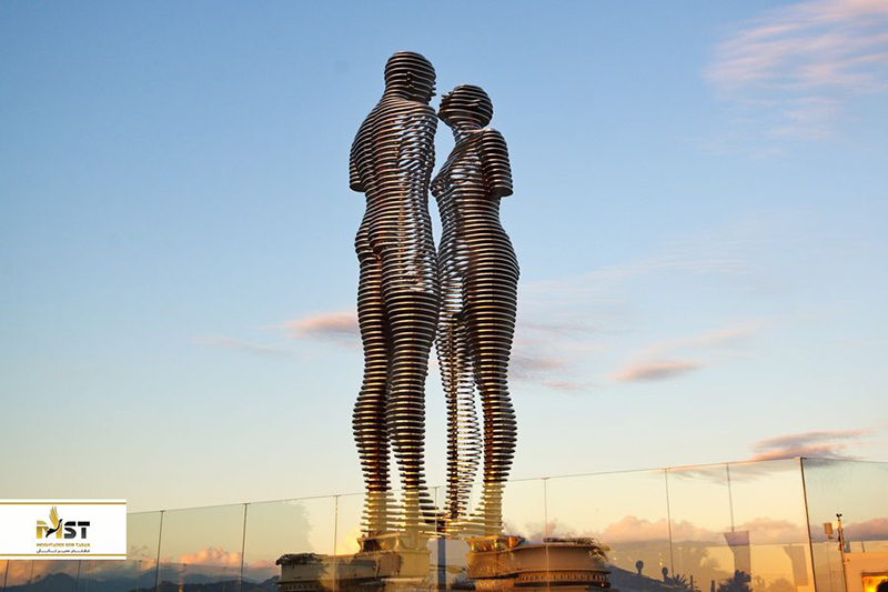 درست در مقابل چرخ و فلک، می توانید مجسمه فوق العاده خلاقانه علی و نینو را پیدا کنید. این مجسمهها بر اساس کتاب معروف قفقازی "علی و نینو" نامگذاری شدهاند که به داستان غم انگیز عشق یک پسر جوان آذری و یک شاهزاده خانم گرجی در زمان جنگ جهانی اول میپردازد. مجسمهها در حال حرکت هستند و هر چند دقیقه یکبار موقعیت خود را تغییر میدهند و حتی از کنار یکدیگر عبور میکنند. این یک منظره بسیار جذاب و دیدنی است!