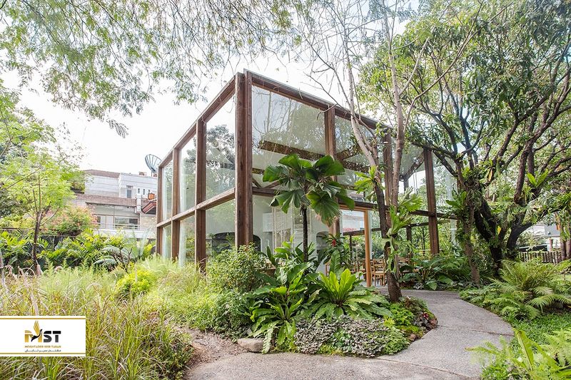 اگر عاشق بودن در طبیعت هستید اما نور خورشید شما را اذیت میکند، به این گالری و کافه استوایی بیایید. محوطه کافه، فضای بزرگی است که توسط درختان کوچک احاطه شده و با سقف گلخانهای نیمه شفاف و سرخسهای آویزان تزئین شده است.