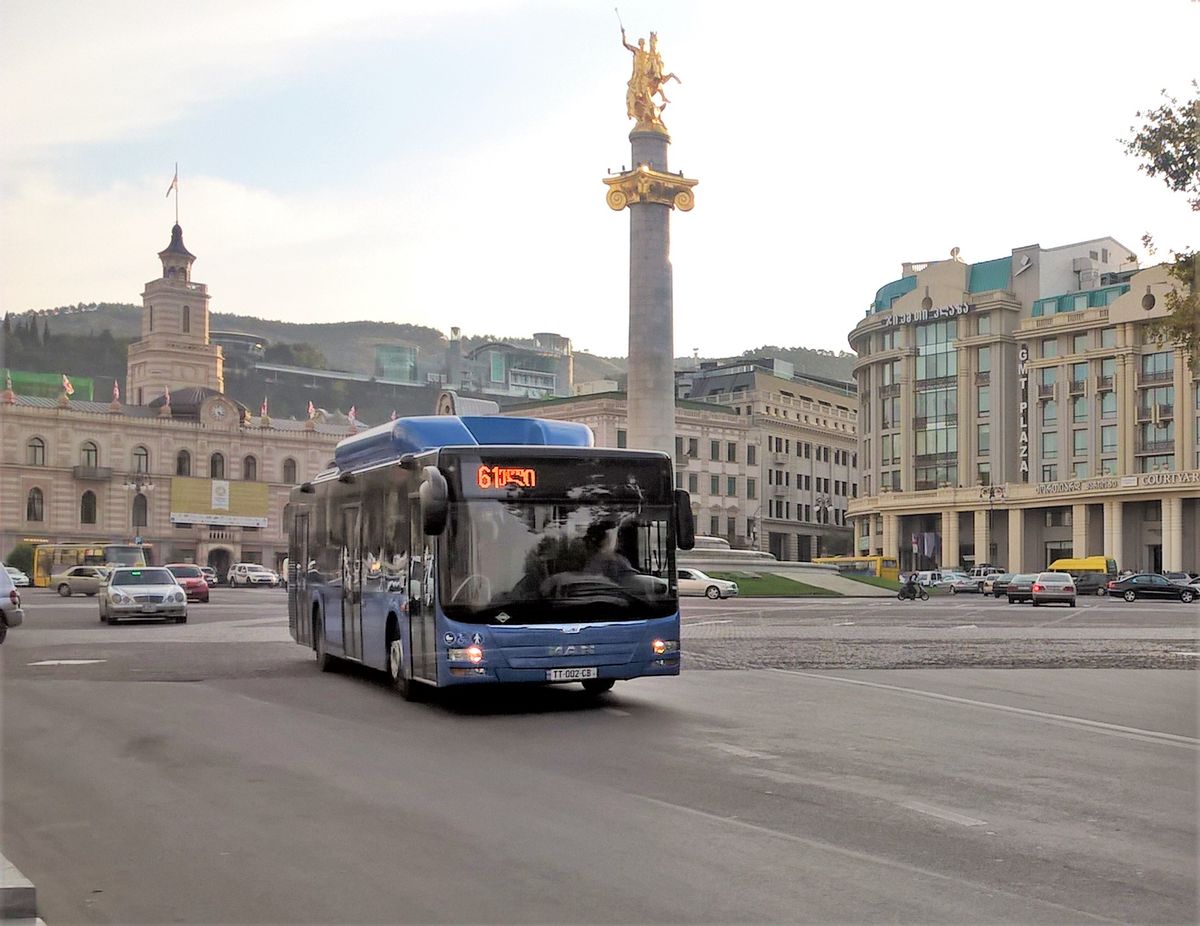 اتوبوس خودش به دو بخش اتوبوسهای داخل شهری و اتوبوسهای بین شهری تقسیم میشود.حمل و نقل اتوبوس شامل تمامی شهرهای بزرگ و شهرستانها میشود. شما با اتوبوسهای بین شهری میتوانید با هزینه کمی به همه جا سفر کنید البته باید تحمل ترافیک و هدر رفتن زمان را هم داشته باشید، اما همچنان راه حلی کارا و همیشگی برای مسافران است. برای سفرهای بین شهری نیز استفاده از اتوبوس بسیار مقرون به صرفه است. ضمن اینکه شانس تماشای طبیعت گرجستان را هم خواهید داشت.