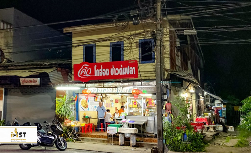 این رستوران ساده که در طبقه پایین یک مغازه چوبی در شهر پوکت قرار دارد، خوراکیهای رویایی سرو میکند. اما محبوبترین غذای اینجا، بشقابهای غلیظ کائو تام هستند که به سبک تایلندی-چینی تهیه و ارائه میشوند. خرچنگ کاری که با تخم مرغ غلیظ شده طبخ و با مقدار زیادی پودر کاری آغشته میشود و همچنین ماهی سرخ شده با کلم ترشی و سوپ تام یام با ماهی، از دیگر گزینههای پرطرفدار در این غذاکده خیابانی به شمار میآیند.